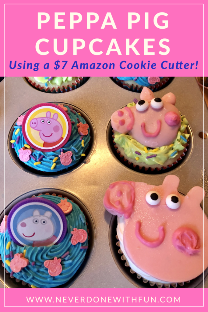 Reach out if you’d like a customized invitation for your party, and share your Peppa Pig cupcake creations with #NeverDoneWithFun!